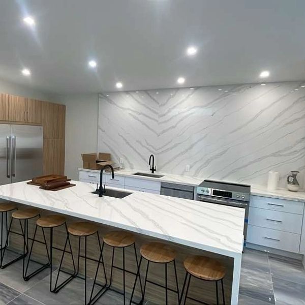 The villa features a modern, fully equipped kosher kitchen with sleek finishes.